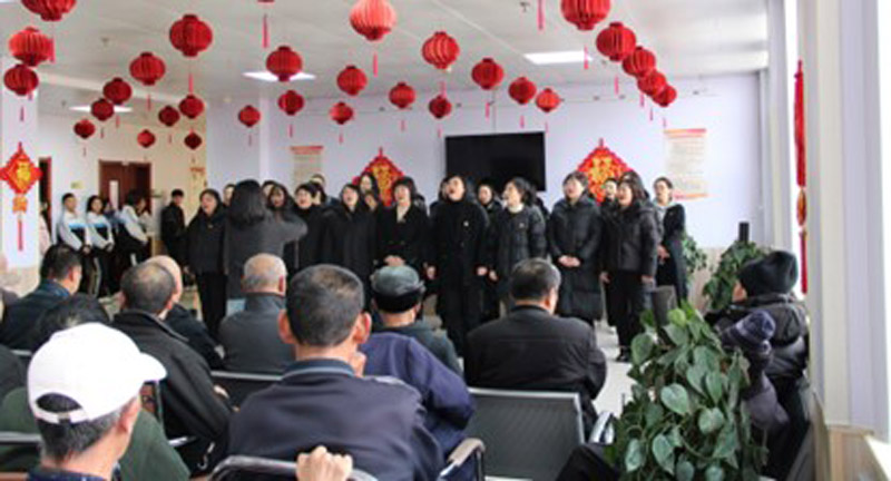 团员学生代表们精彩的表演之后,党员教师们也拿出全部的诚意,为老人们献出优美的赞歌。